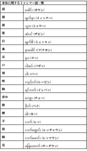 こんにちは、テイリ!以前、体調が悪い時に使えるフレーズとして「頭が痛い」とか「歯が痛い」とか教えてくれたけど、頭とか歯以外にも、手とか腰とか身体に関する他のミャンマー語を教えてくれるかな? こんにちは、ノリ。目とか鼻とか身体に関する単語は、…